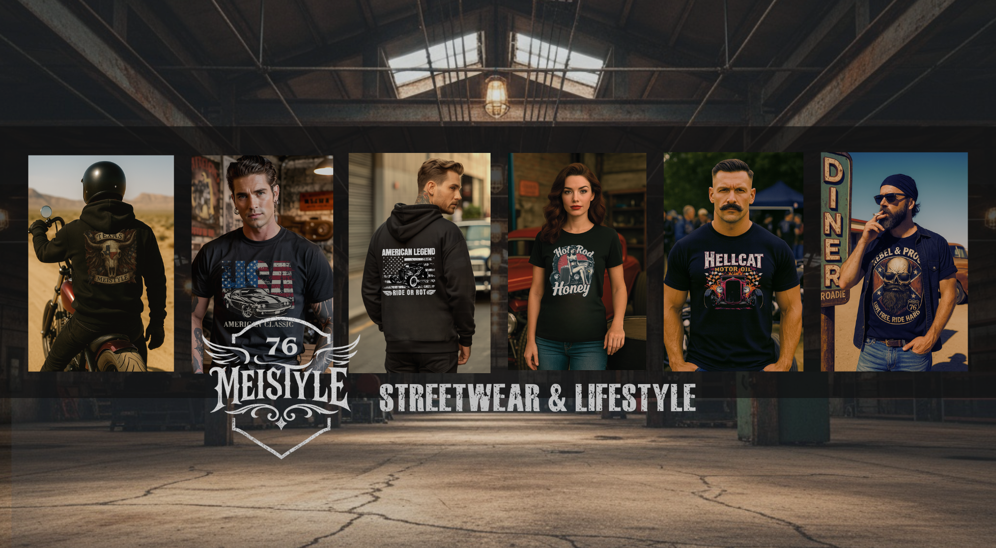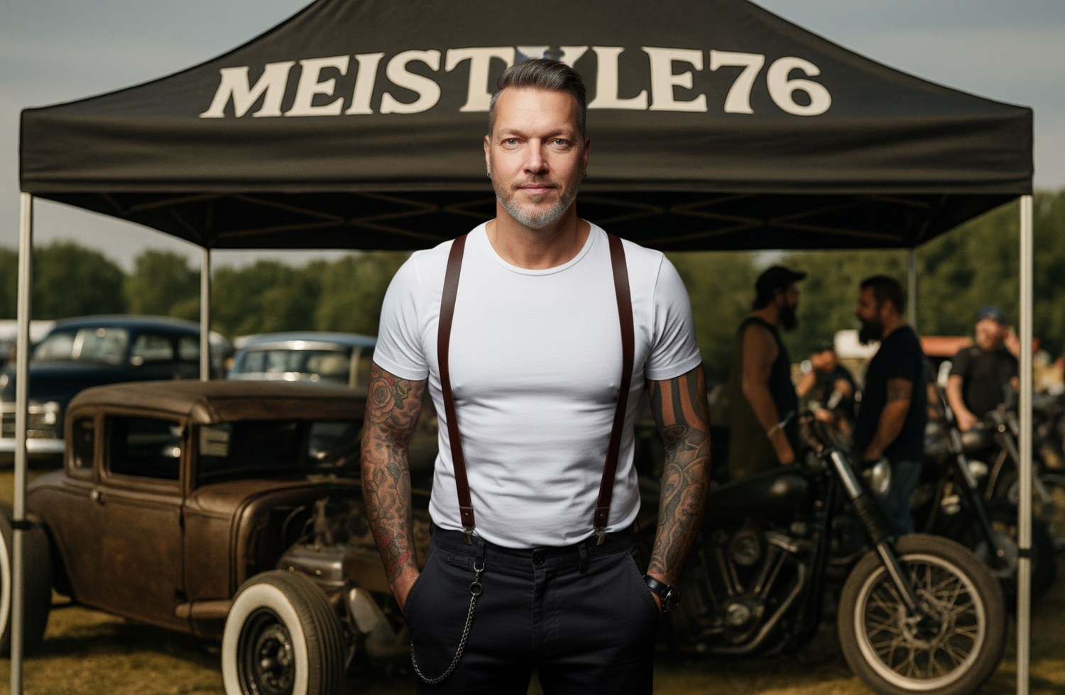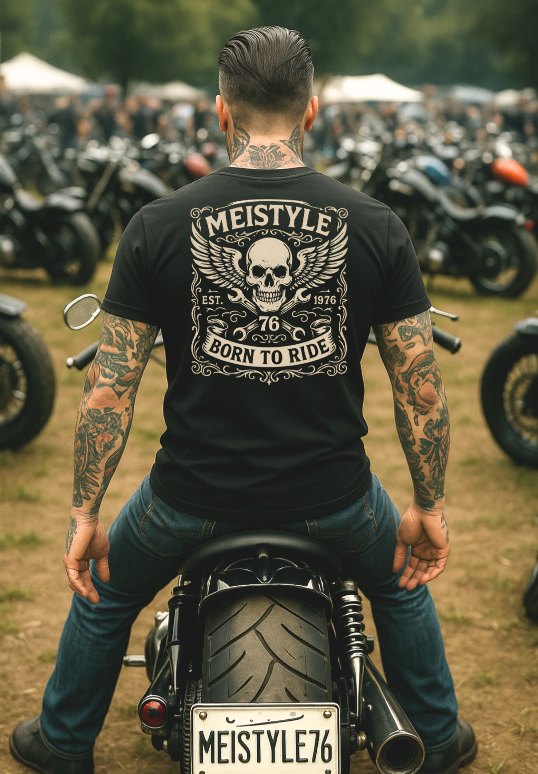 Bei Meistyle76 bekommst du keine graue Massenware. Hier gibt’s Styles mit Humor, Charakter und Seele – inspiriert von Roadtrips, Rock’n’Roll, Tattoos, Biker-Life und US-Car-Kultur. Kein Mainstream. Kein 08/15. Nur ehrliche Shirts mit klarer Botschaft: Lebe locker, genieß mehr und mach dein Ding.