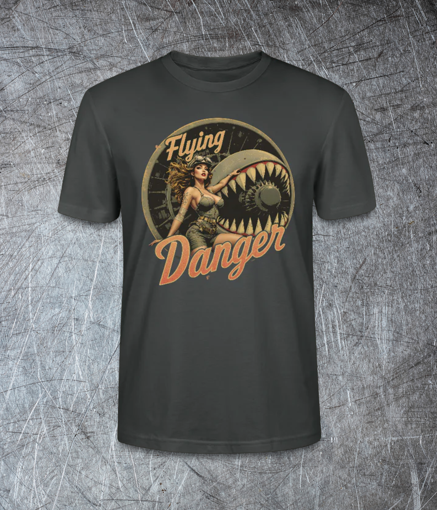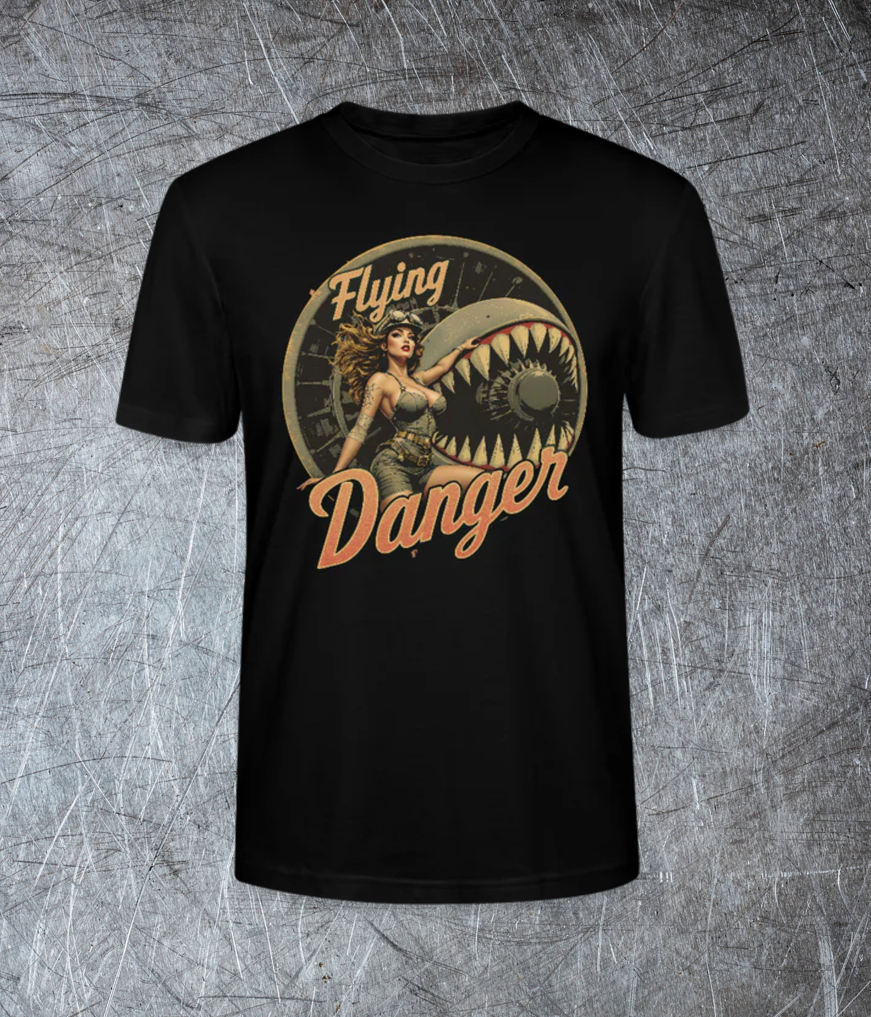 Retro-Style mit Pinup & Propeller – Flying Danger im klassischen Warbird-Look.