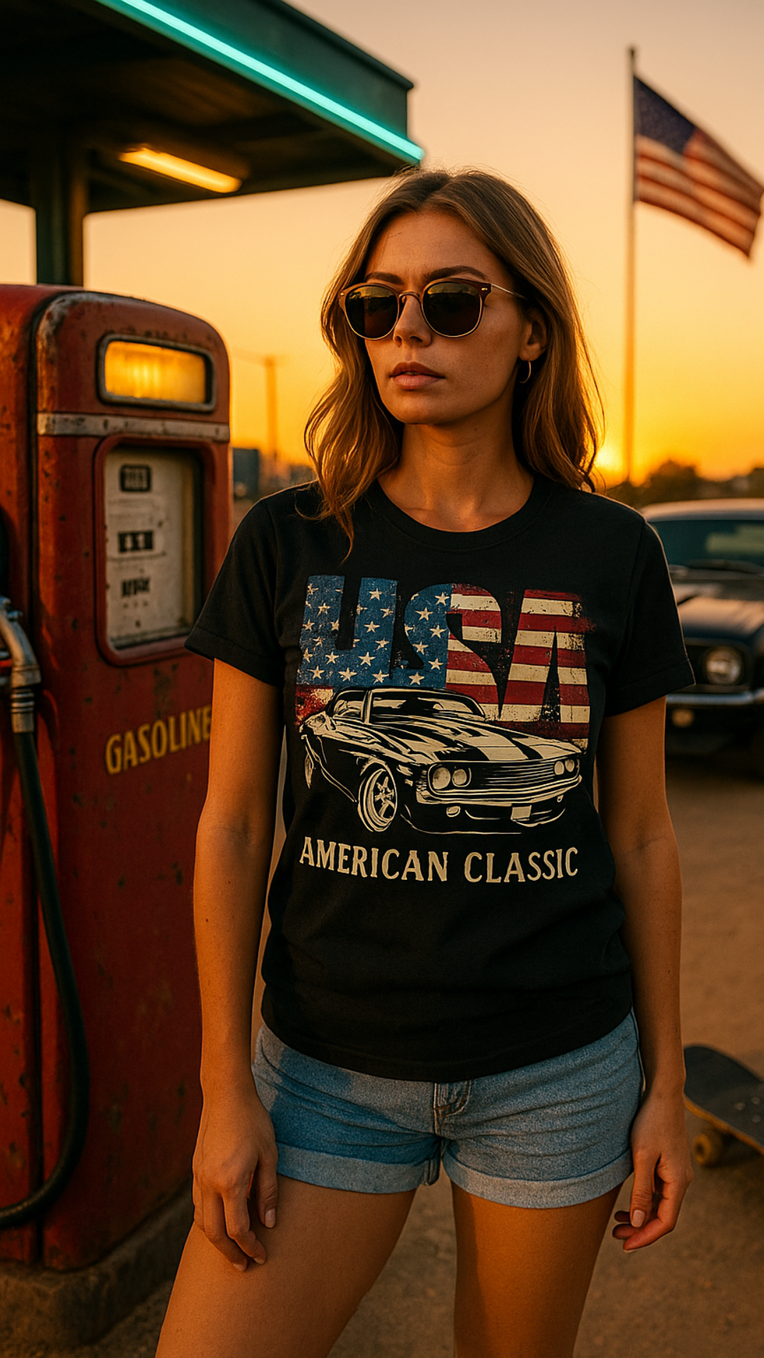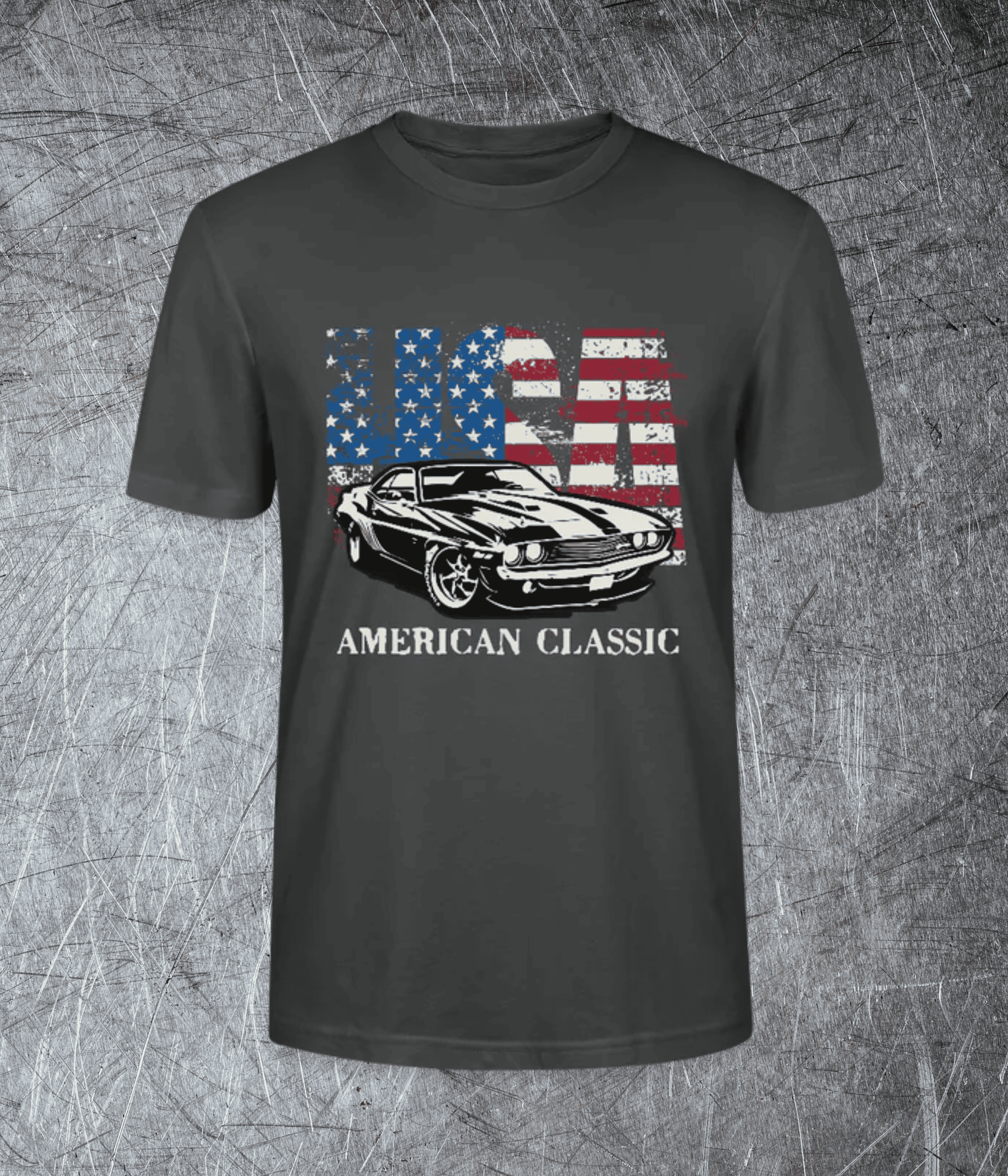 American Classic – Muscle Car & Flag - Premium T-Shirt